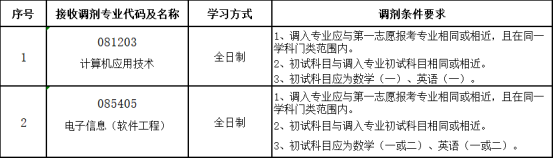 公司各专业缺额信息将由学校通过“全国硕士生招生调剂服务系统”向考生公布,请以调剂系统公布为准。参加调剂考生应满足以下条件: