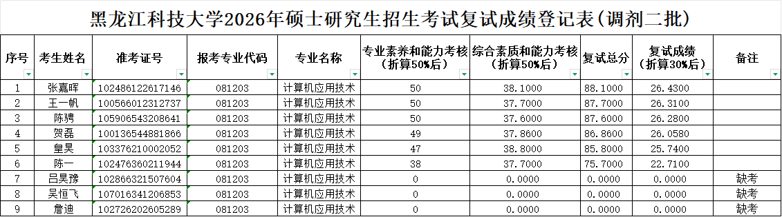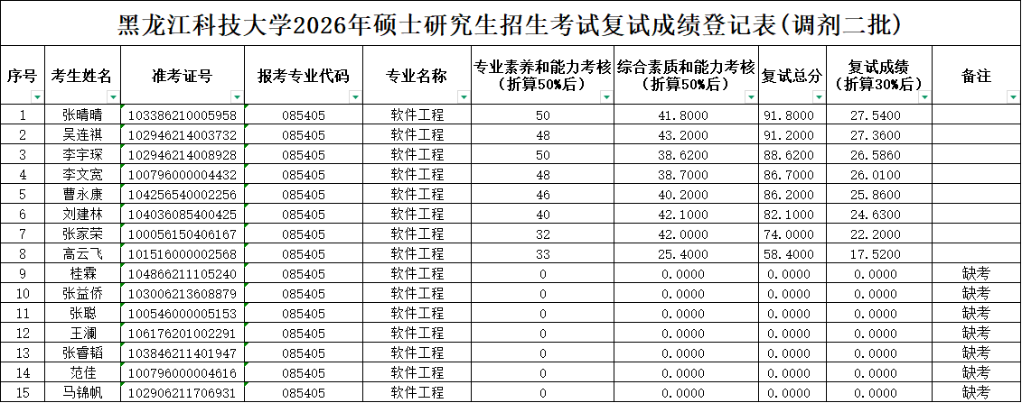 2026年硕士研究生招生考试复试成绩公示(调剂二批)