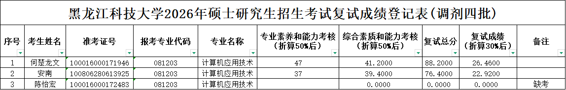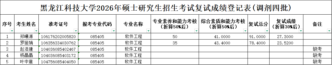 2026年硕士研究生招生考试复试成绩公示(调剂四批)