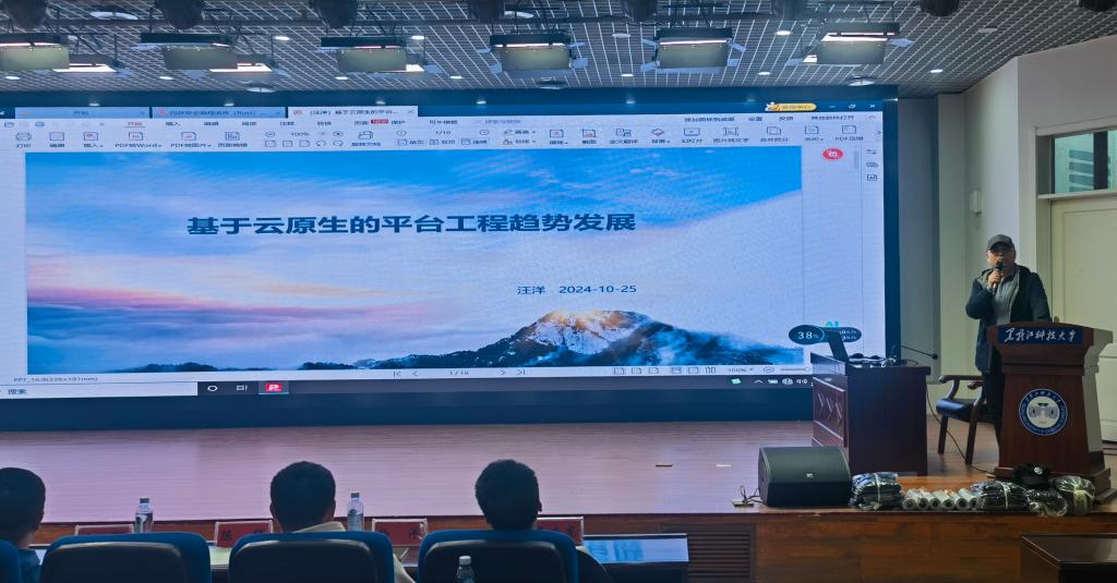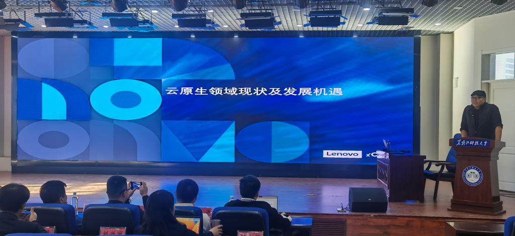 联想云原生研发总监张文杰、蚂蚁集团密码学专家张成龙、华为云产品总监汪洋、华为2012试验室高级技术专家马全一分别以《云原生领域现状及发展机遇》《基于铜锁开源社区的产学研实践经验》《基于云原生的平台工程趋势发展》《内存安全编程语言(Rust)趋势发展》为题进行了专题报告,为师生分享了各自的研究成果。