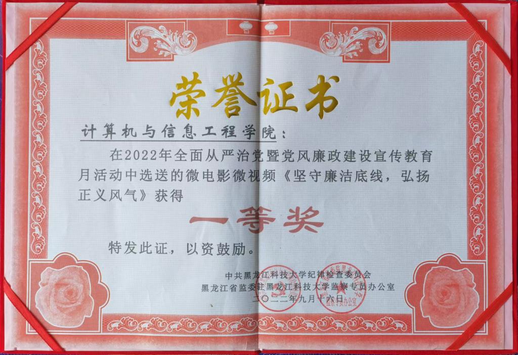 2022年全面从严治党暨党风廉政建设宣教育月活动选送微电影获一等奖