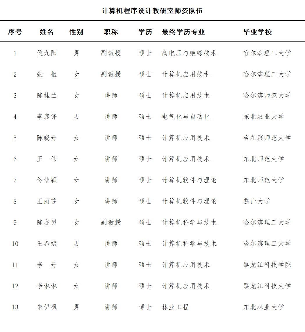 计算机程序设计教研室团队队伍