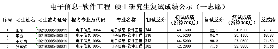 太阳成集团tyc334552023年电子信息-软件工程硕士研究生考生复试成绩公示(一志愿)
