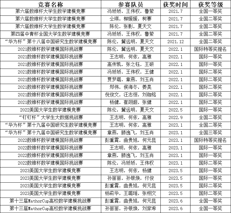创新竞赛主要获奖统计表