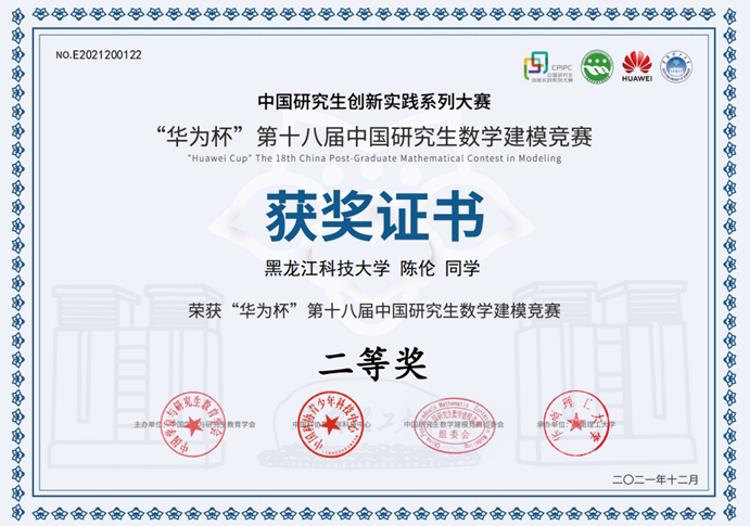 2021和2022年中国“华为杯”研究生数学建模竞赛全国二等奖2项和全国三等奖1项。